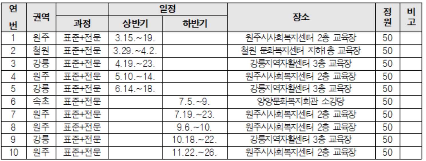 2021년 강원도 장애인활동지원사 양성 교육 기관 및 일정