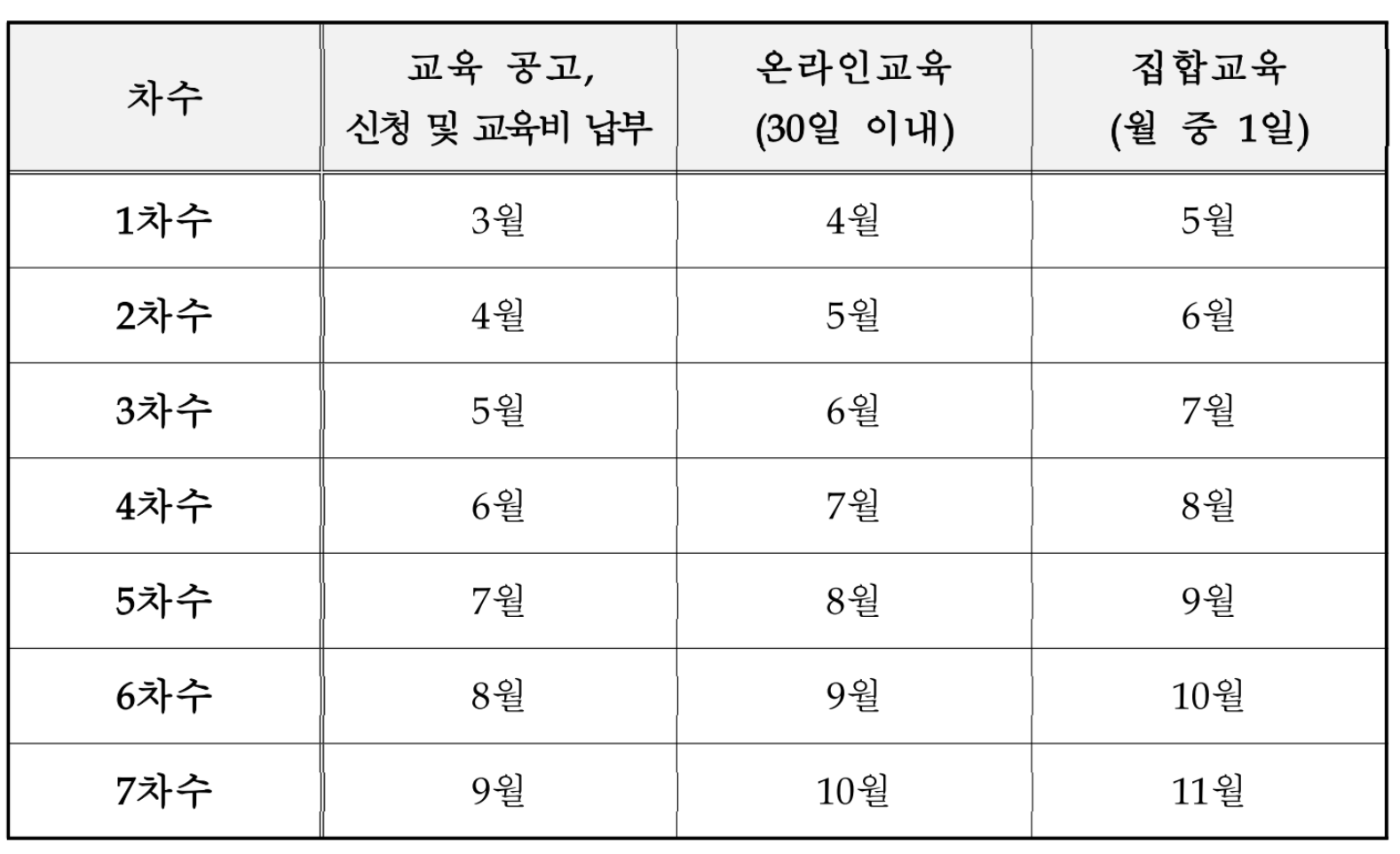 ◆ 집합(오프라인)교육 : 10. 1.(금) ~ 10. 29.(금) 기간 중 1일