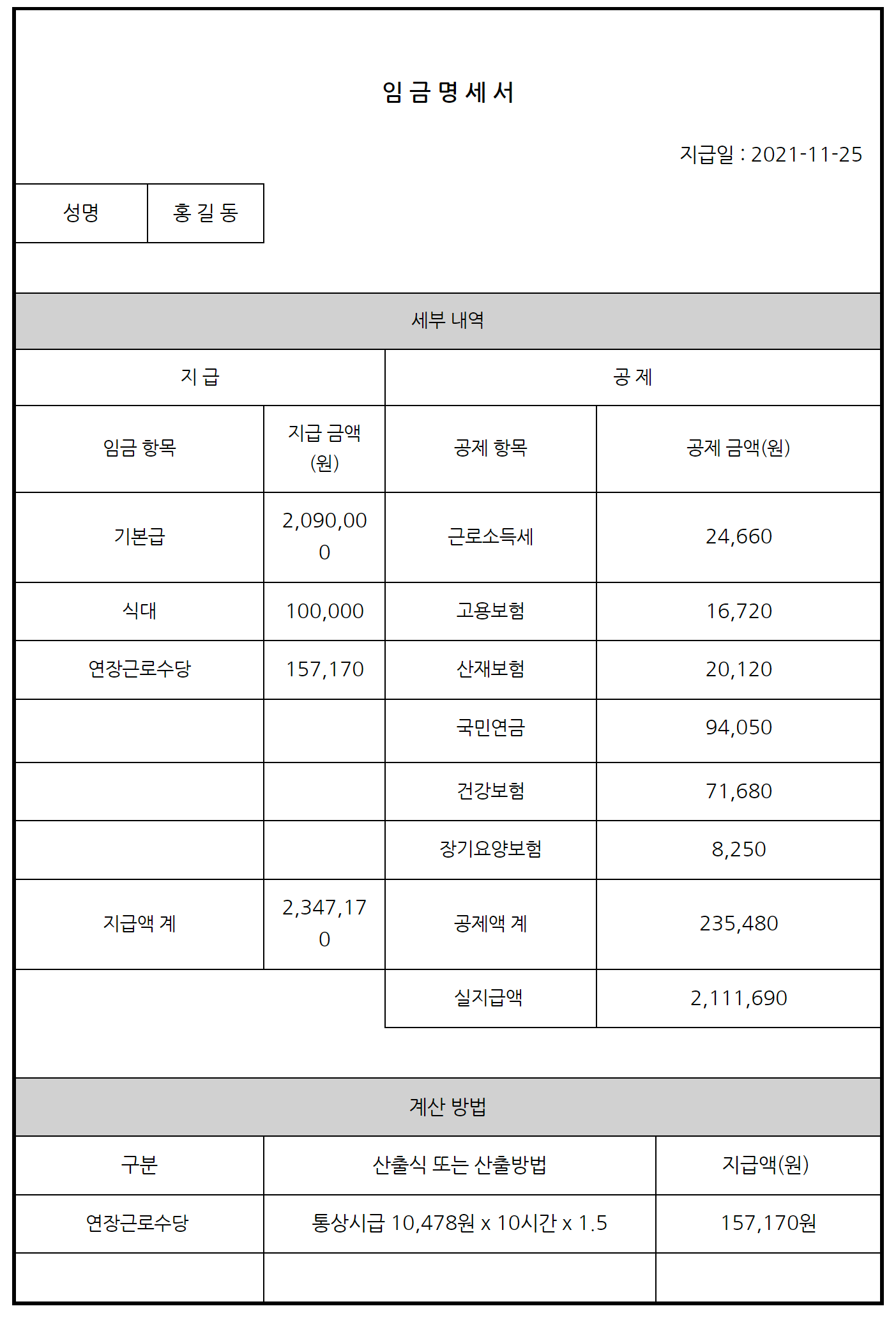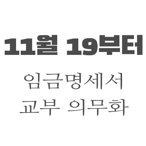 11월 19일부터 근로기준법 개정에 따라 근로자에게 임금을 지급할 때 임금명세서( 급여명세서 )를 반드시 교부해야 한다. 교부 위반시 과태료가 있다.