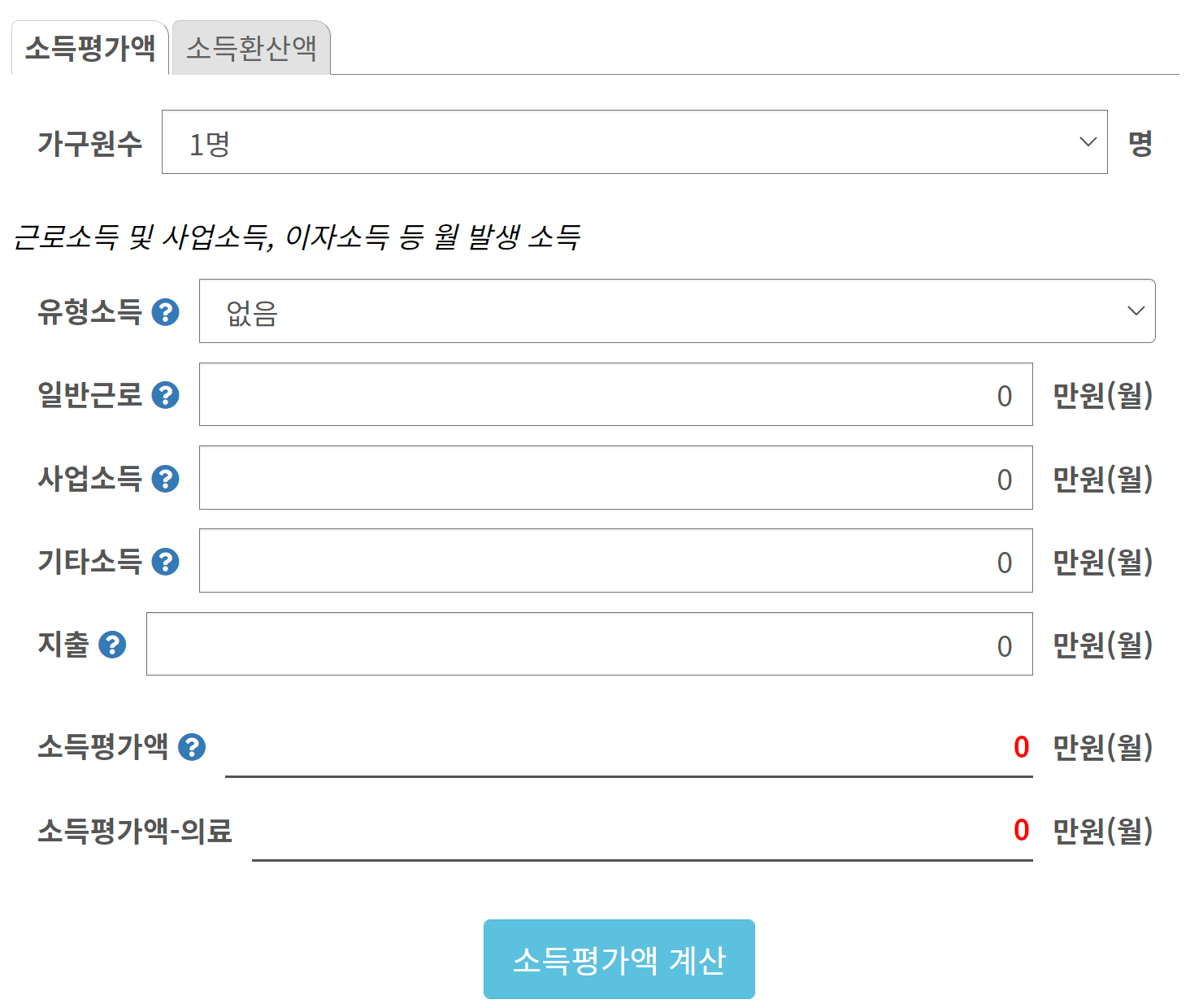 기초생활 수급자 소득인정액은 모의계산기를 이용해 볼 수 있다.