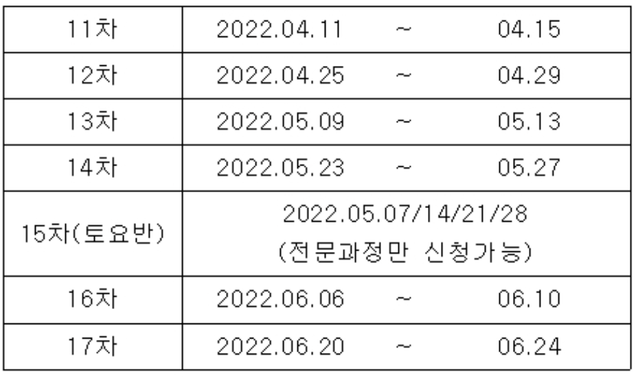 | 8기 (주중) | 전문 | 5/23~5/26(월~목,4일) |