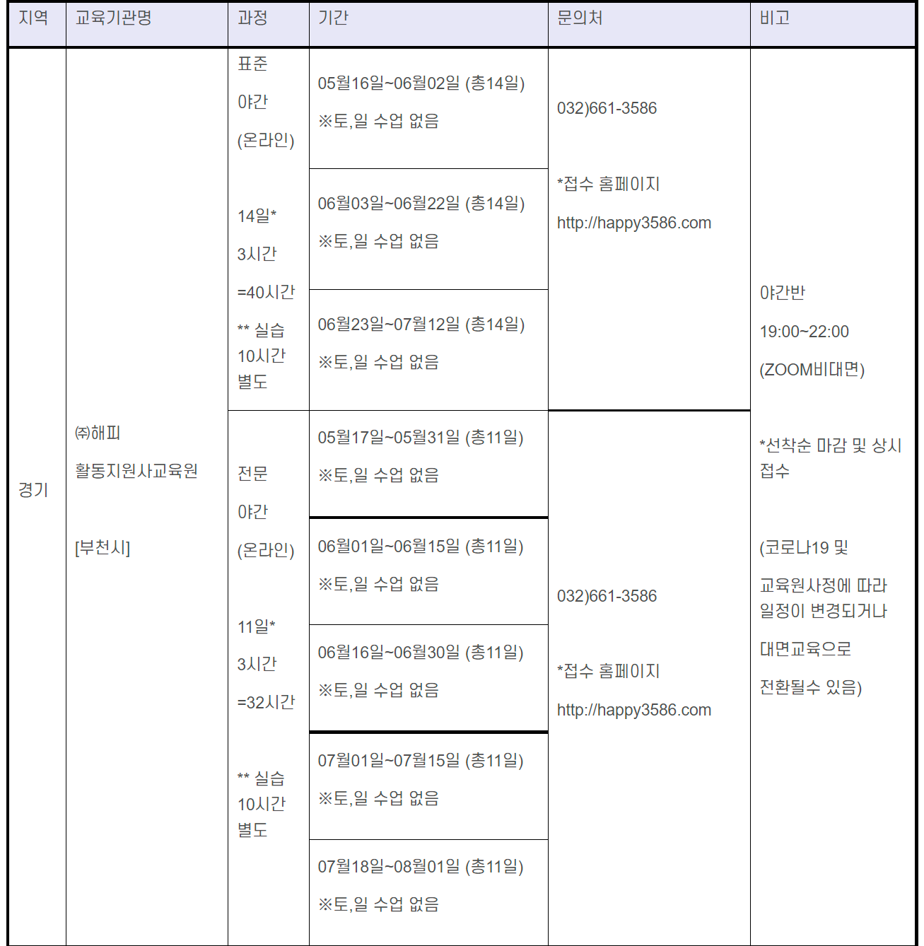 2022년 5월 경기 장애인활동지원사 양성 교육 일정 모음