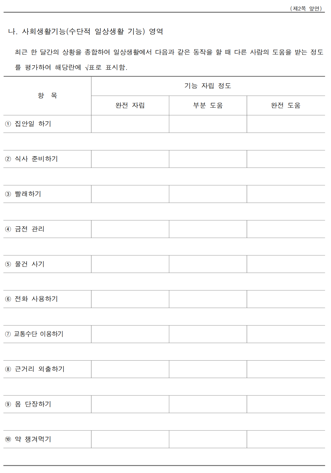 나. 사회생활기능(수단적 일상생활 기능) 영역