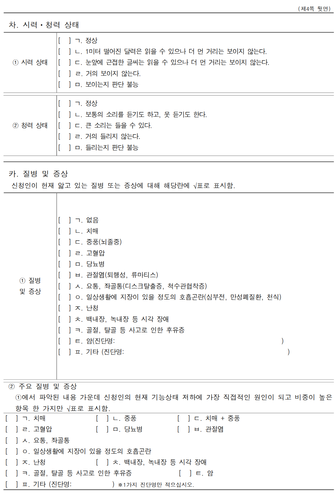장기요양인정조사표 서식 PDF 다운로드 및 내용 보기
